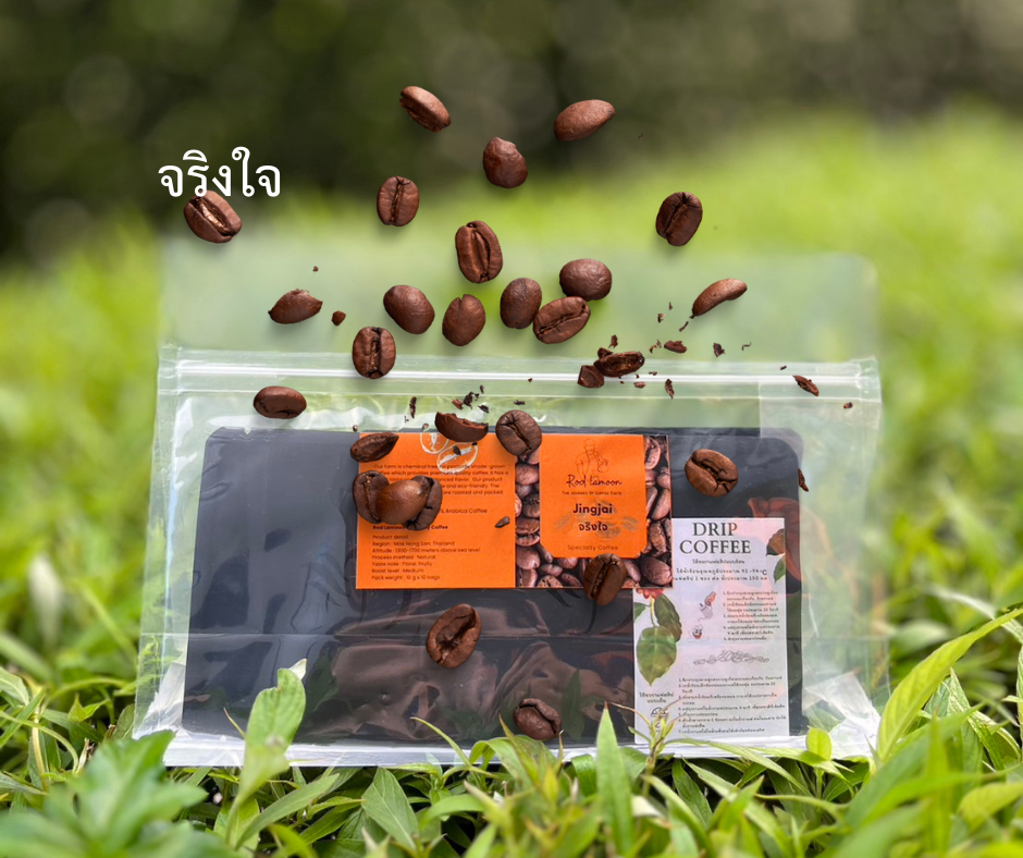 Jingjai รสละมุน “จริงใจ” กาแฟดริปพิเศษแบบซอง ขนาดพกพา สะดวกทุกที ☕🌳